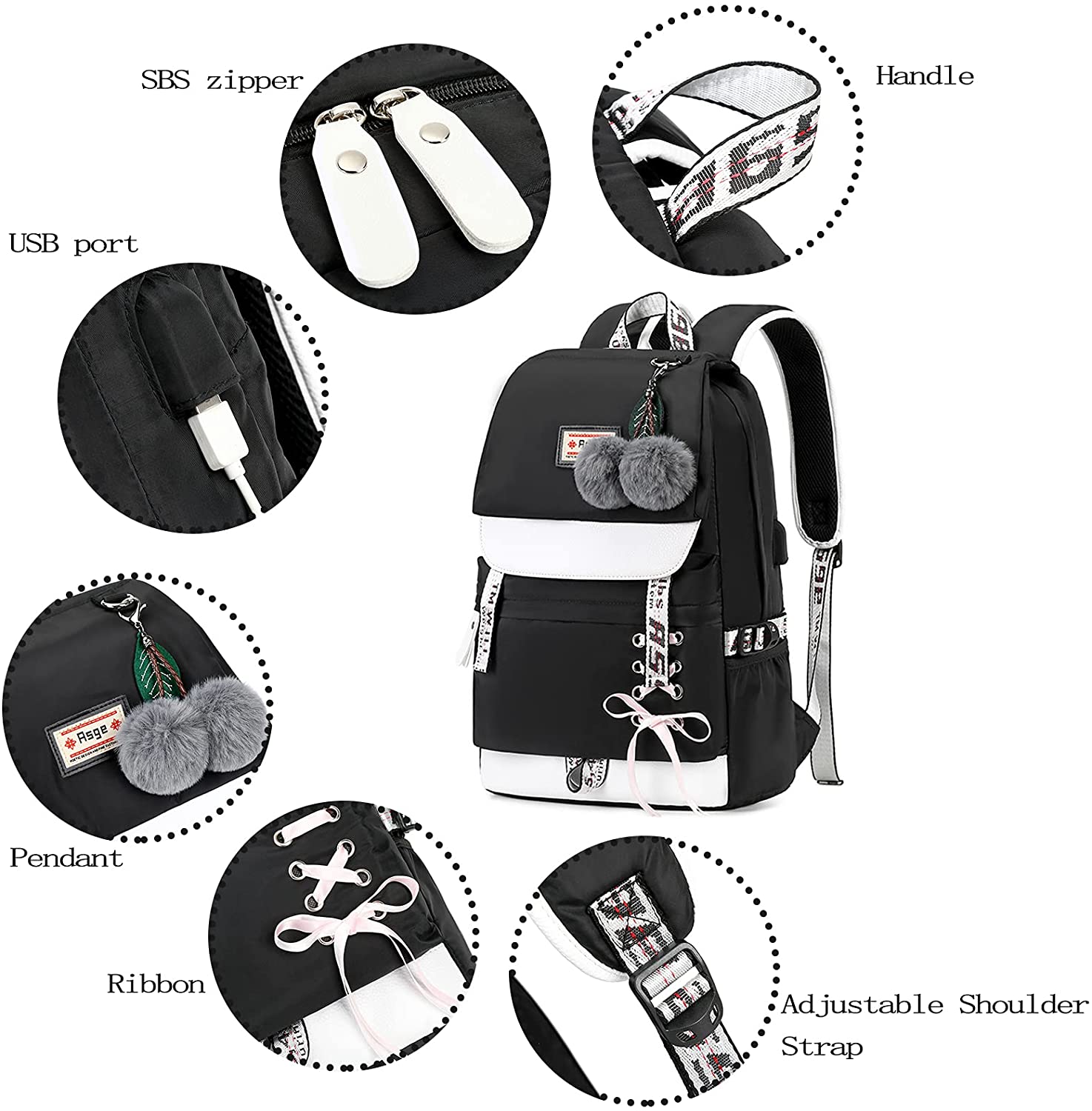 - UNIQUE FASHION: Fashion Popular Ribbon Design, What's more, it is designed by our Asge brands designer, unique in Amazon. Robust zips are quite good against slips, waterproof. Several bags of student child backpack help to organize the stuff inside, keep your bag neat and clean, simplify your life, side pockets can be used for small objec